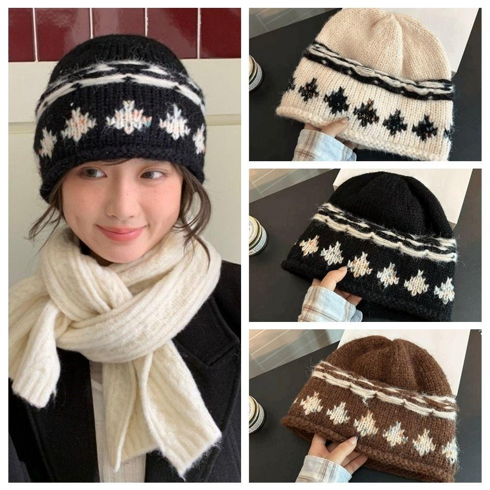 Вязаная шапка-бини в стиле ретро, теплая, теплая вязаная шапка, модная жаккардовая вязаная шапка, женская мода