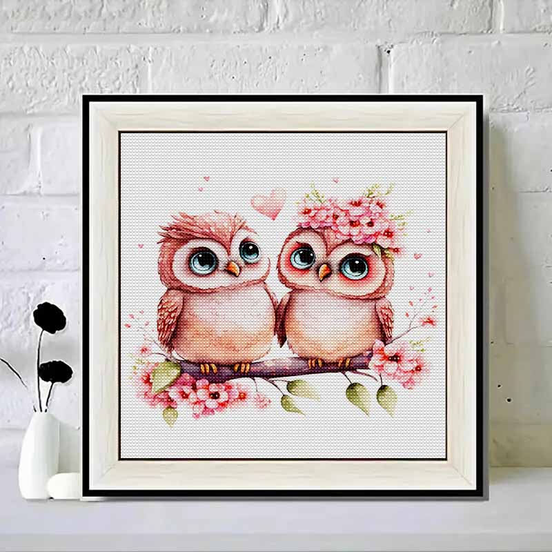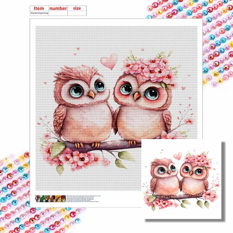 New Arrival 5D DIY Full Circle Diamond Painting "Pink Owl Couple" Embroidery Cross Stitch Home Decor Gift