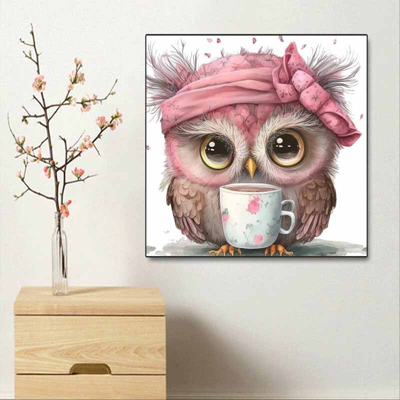 New Arrival 5D DIY Full Circle Diamond Painting "Pink Owl" Embroidery Cross Stitch Home Decor Gift
