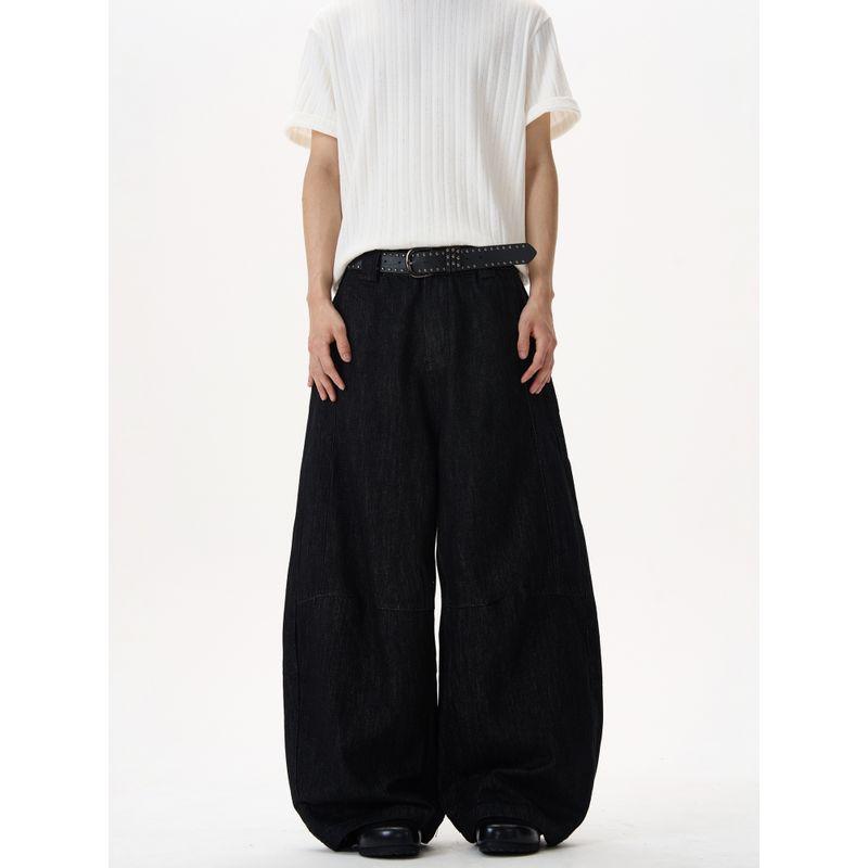 Kisko American Retro Denim Black Washed Baggy Scimitar Jeans Unisex Trendy Brand Cool Wide-Leg Pants
