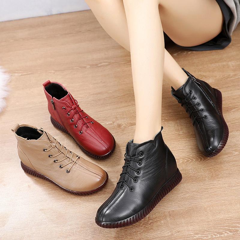 Ботильоны на плоской подошве со шнуровкой для женщин, высокие кожаные туфли, короткие плюшевые ботинки, женская осенняя обувь, женские демисезонные ботинки