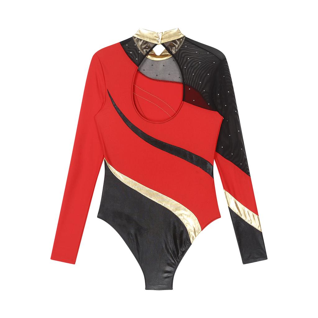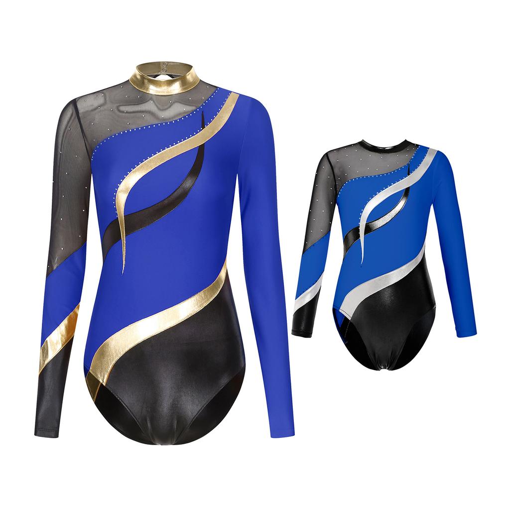 Женский металлический гимнастический танцевальный купальник со стразами, балетный танцевальный комбинезон, акробатическая форма