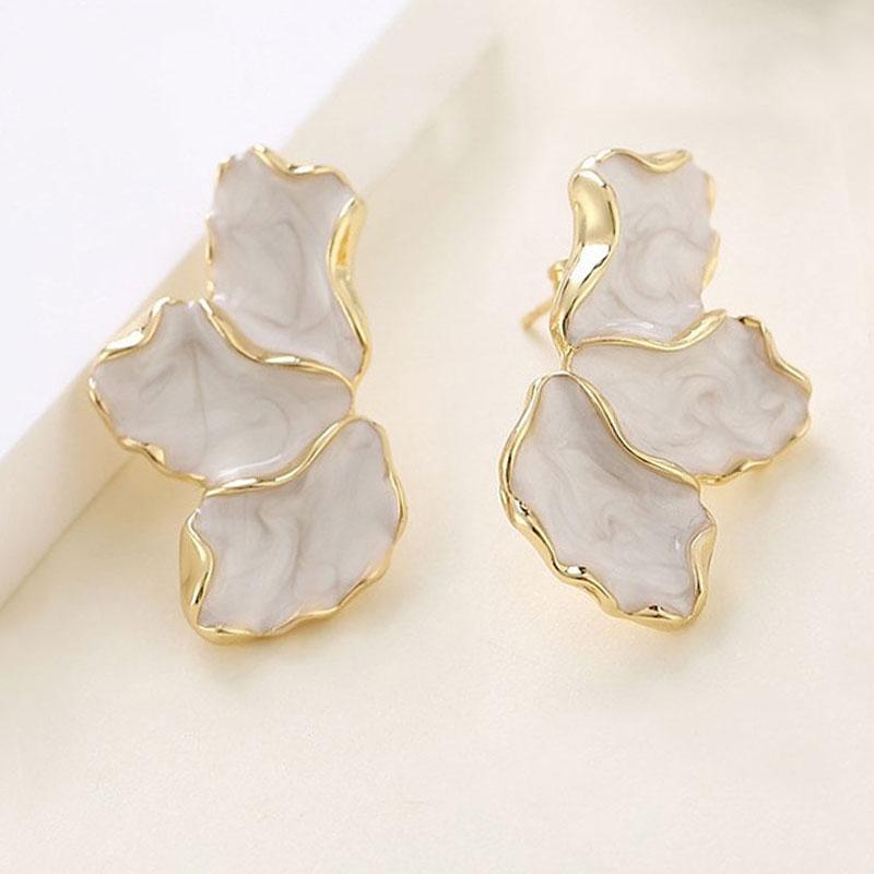 Metal Flower Cream Stud Earrings For Women Fashion Gold Color Plating Irregular Post Earrings Heavy Design Statement Earring — купить товар онлайн с бесплатной доставкой по всему миру!
