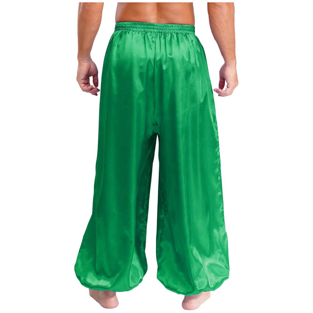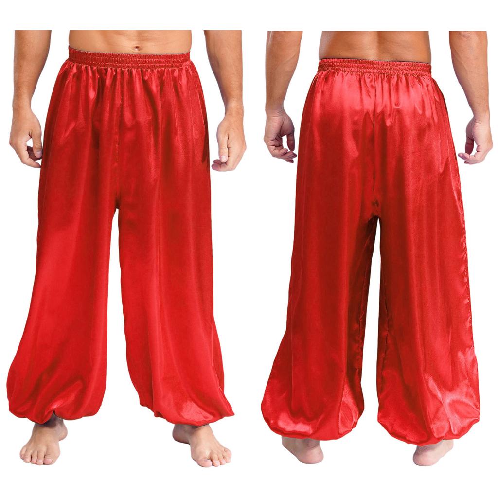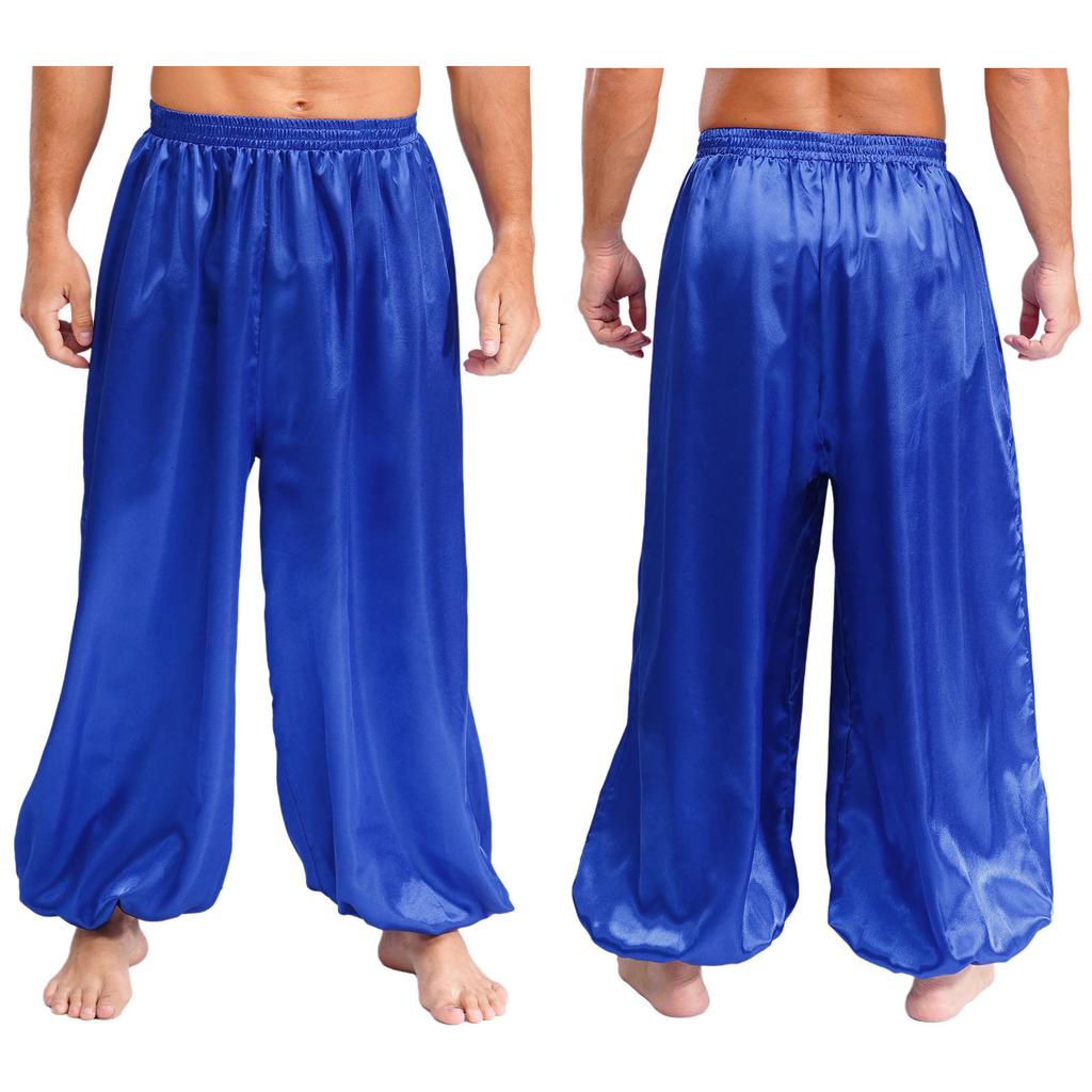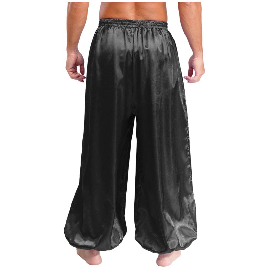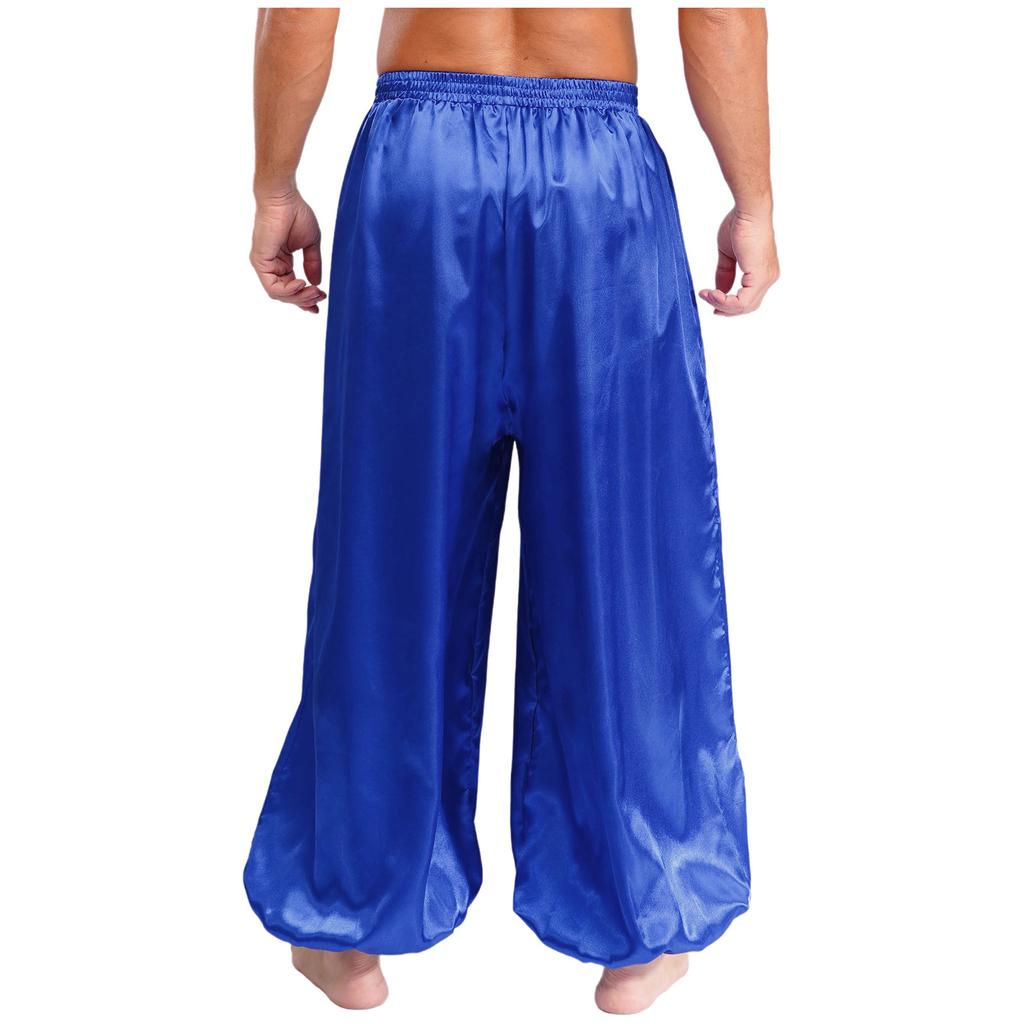 Мужские штаны для танца живота S-XXL Свободные атласные шаровары Эластичный пояс для сценического выступления тематической вечеринки