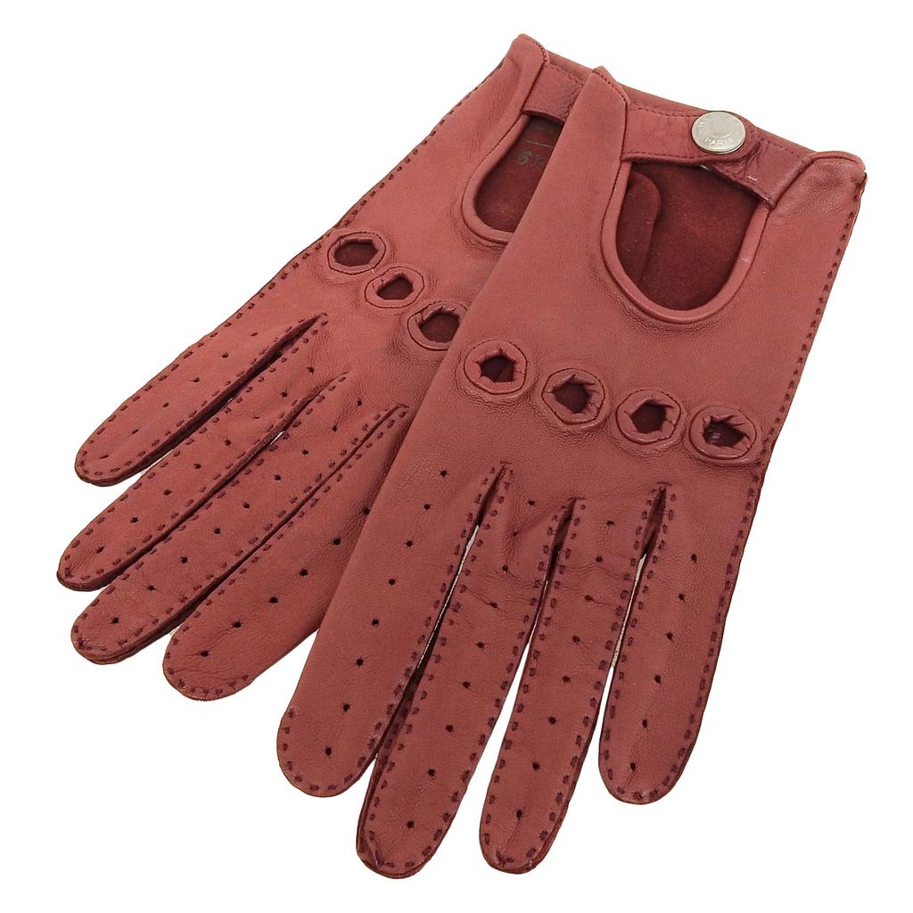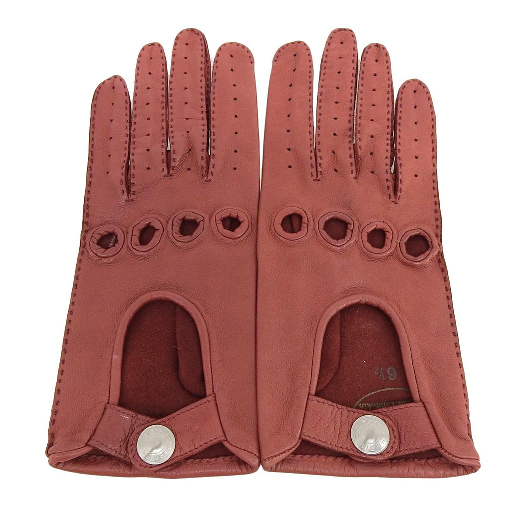 Отличные перчатки HERMES Serie Button Водительские перчатки Бордовая ягнячья кожа Женские 6.5 Б/у