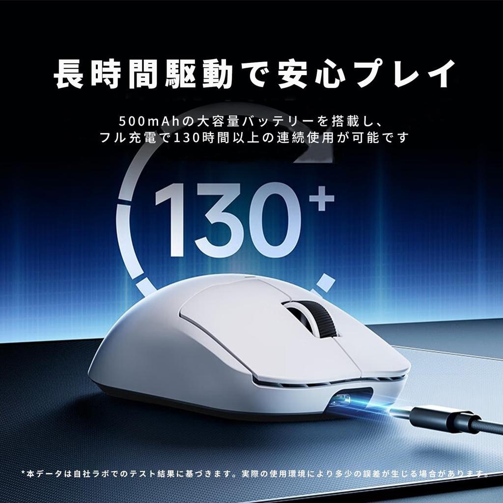 Its high-capacity mAh battery allows for approximately 130 hours of continuous use on a full charge. It features SuperGlide "glass coating." A special anti-fingerprint coating maintains a smooth feel and a comfortable grip even during extended gaming sessions. [Easy Customization & High Compatibility] The A5 V2 Ultra Wireless Mouse supports Japanese web and client drivers. No installation is required; you can easily set up and customize it online. It supports three connection modes (wired, 2.4GHz, and Bluetooth) for stable performance in any environment. [Warranty & Comprehensive Package] This product comes with a one-year warranty. If you have any questions or issues, please contact an OUSEITECH store. Our staff will respond within 24 hours. Package Contents: 4K Nano Receiver x 1, Paracord Cable x 1, Receiver Extension Adapter x 1, Warranty Card x 1, Non-Slip Grip Sheet x 1, and Function Guide Card x 1.