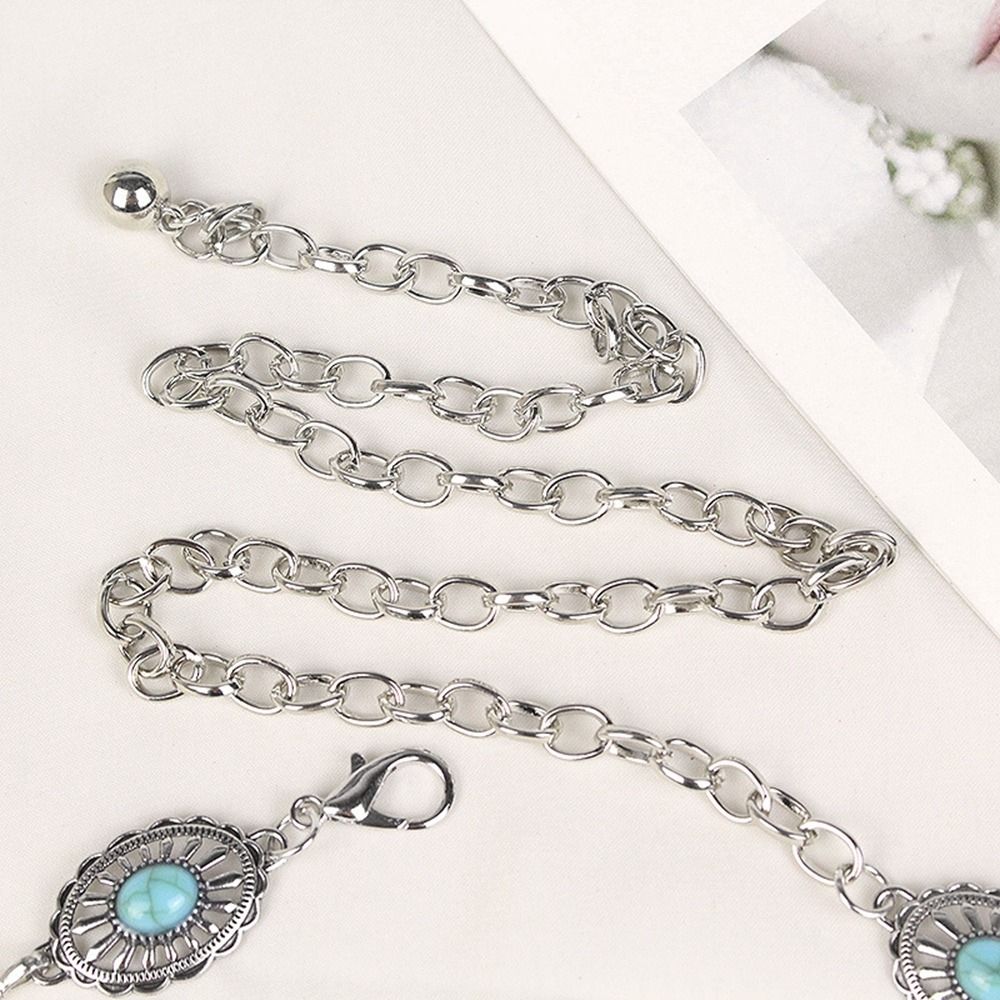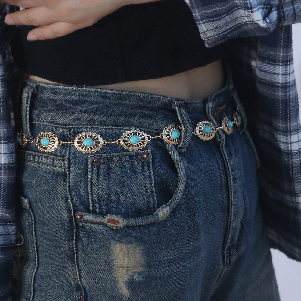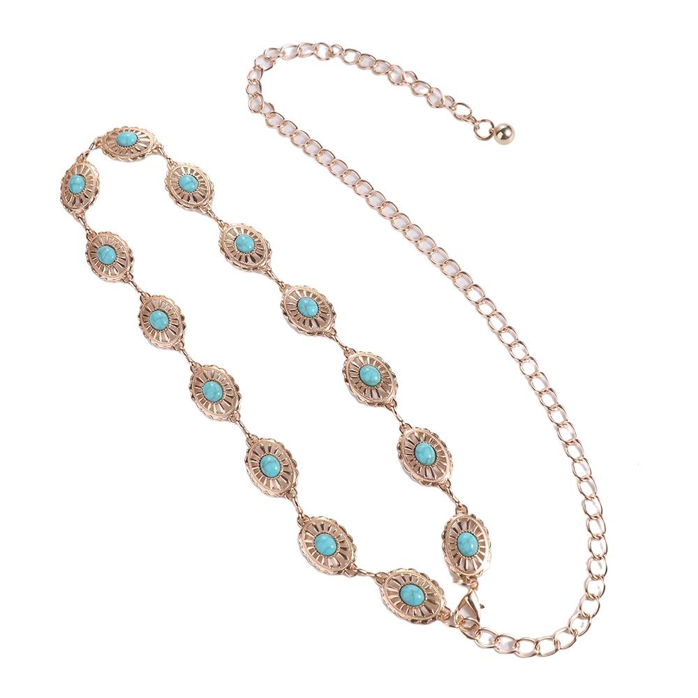Пляжная цепочка для тела Бирюзовая Универсальная Богемные пояса Металлический пояс Женская цепочка на талию Этнический стиль