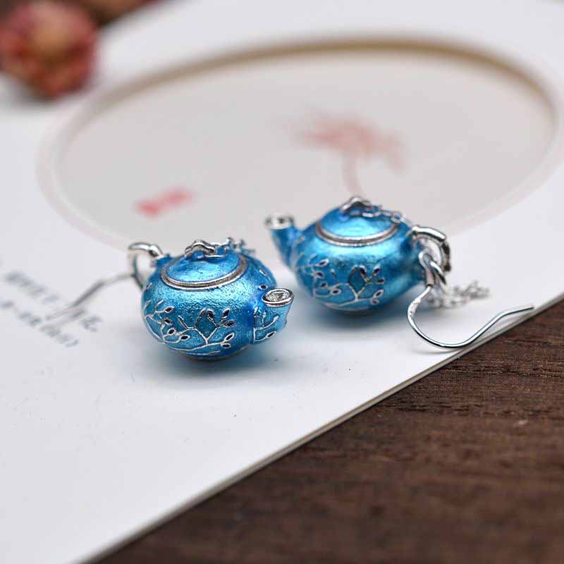 Thai Ethnic Style Enamel Teapot Plum Earrings For Women Exquisite Chinese Ear Hook Hanfu Accessories Jewelry