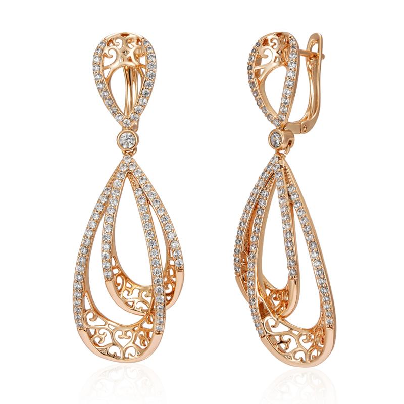 Kienl Rose Gold Color Vintage Long Earring For Women Glossy Metal Shiny Natural Zircon Accessories Trend Daily Jewelry — купить товар онлайн с бесплатной доставкой по всему миру!