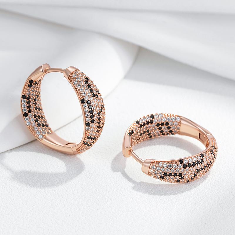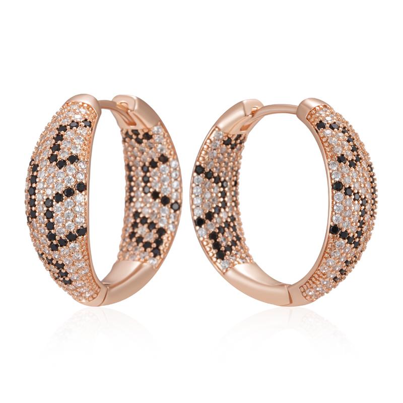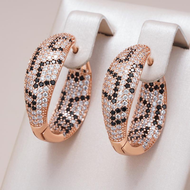 Блестящие серьги-кольца с леопардовым принтом из натурального циркона для женщин, уникальное покрытие розовым золотом и черным, винтажные повседневные украшения