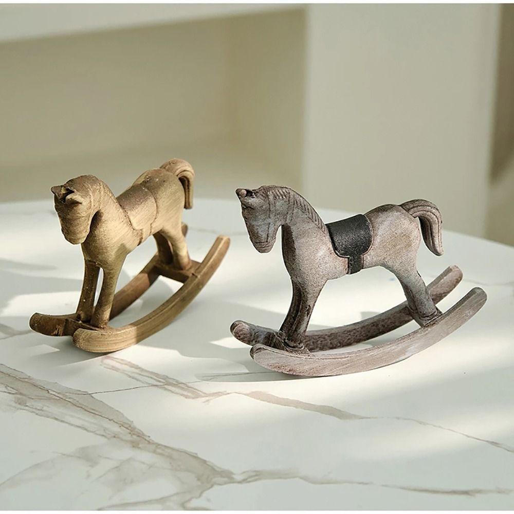Wooden Craft Wooden Rocking Horse Nordic Retro Balance Art Ornament Desk Decor Xmas Decoration