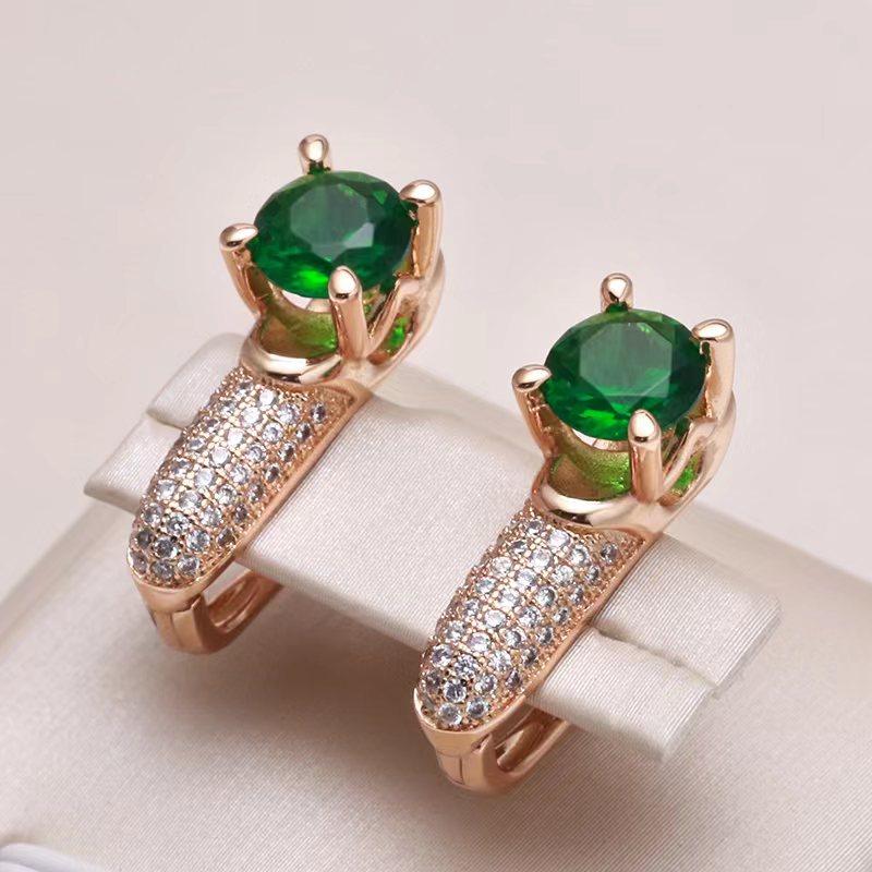 Новые серьги-капли с круглыми изумрудными цирконами для женщин, роскошные серьги из натурального циркона с розовым золотом, модная бижутерия