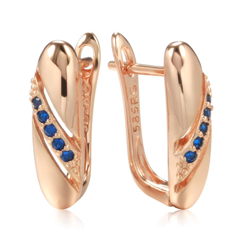 New Simple Blue Natural Zircon Earrings For Women Rose Gold Ethnic Bride Wedding Earrings Stylish Vintage Jewelry — купить товар онлайн с бесплатной доставкой по всему миру!