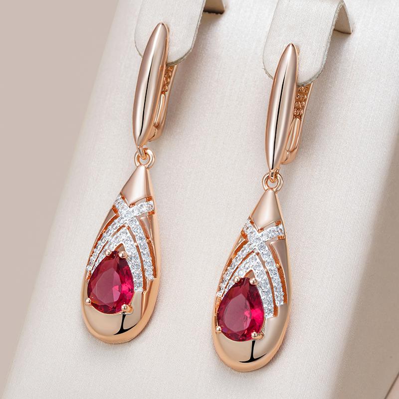 Уникальные этнические красные серьги-капли с натуральным цирконом для женщин, модные, цвета розового золота, смешанные, на каждый день, подарок