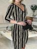 Осень Зима Женские Платья Геометрический Узор Облегающее Платье с Рукавом 7/8 Мини-платье