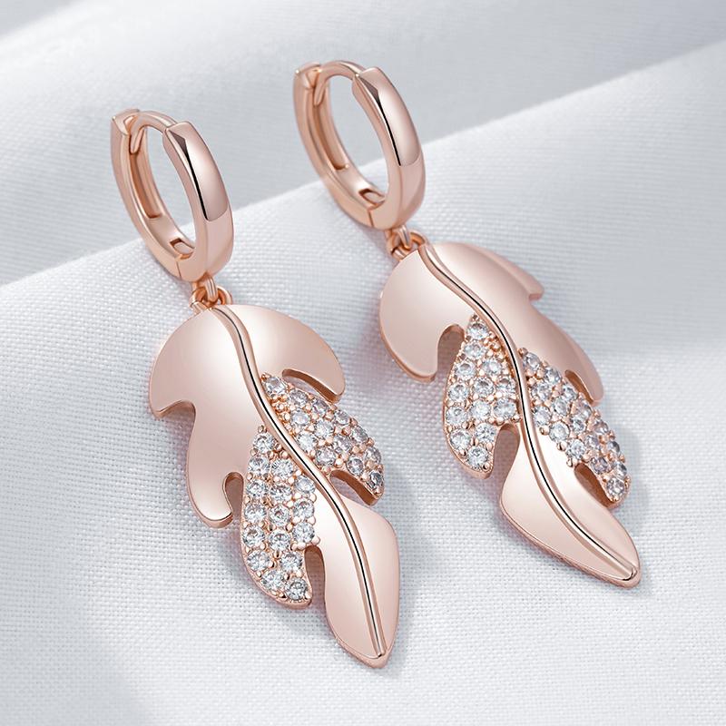 Уникальные длинные серьги-подвески в виде листьев для женщин, модные, цвета розового золота, с натуральным цирконом, роскошные, для повседневной носки, для вечеринок, подарок