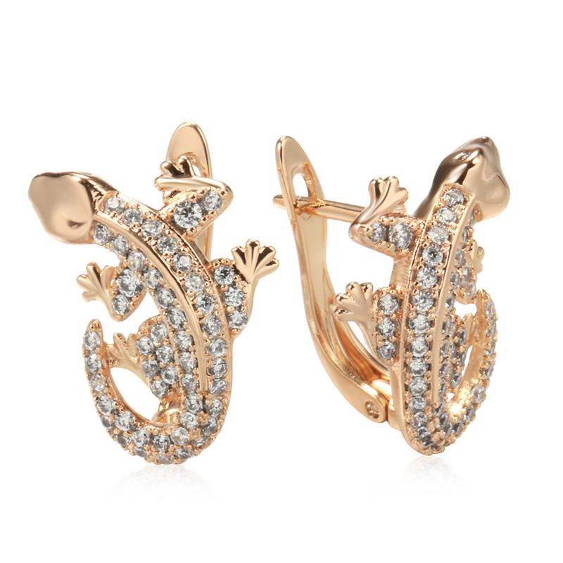 Новые Необычные Серьги-ящерицы из розового золота Повседневная Женская Мода Анималистические Украшения Покрытые Натуральным Цирконом Серьги-подвески