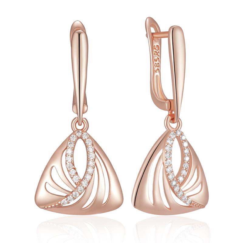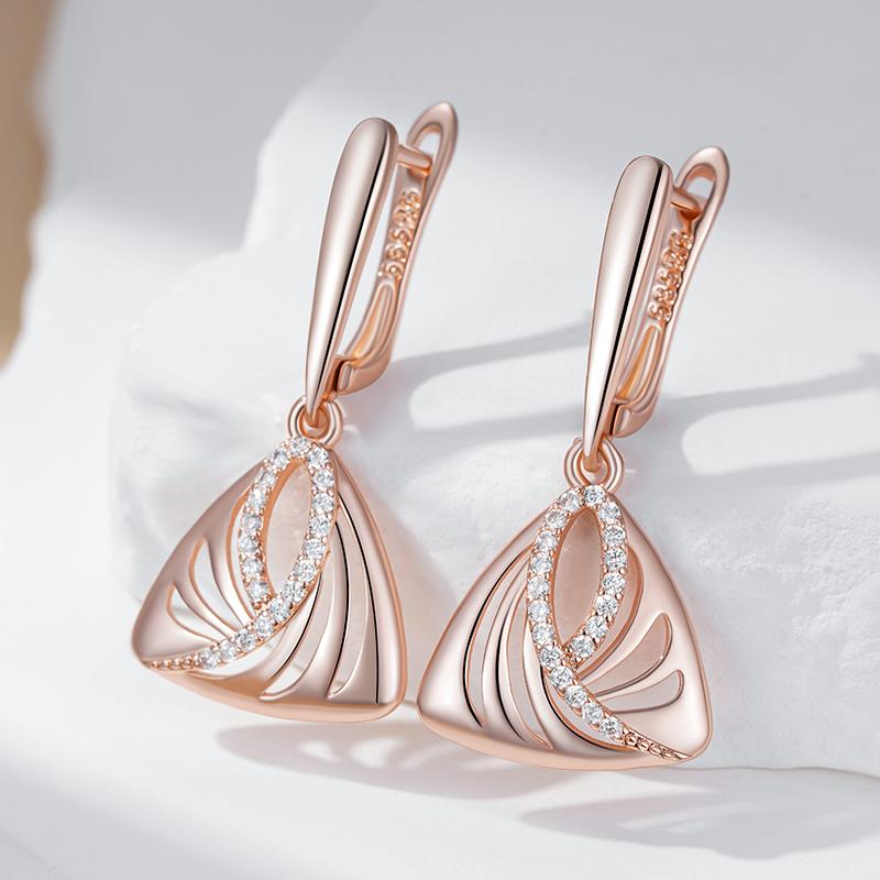 Уникальные геометрические серьги-капли цвета розового золота для женщин, блестящие аксессуары с натуральным цирконом, повседневные изящные украшения в подарок