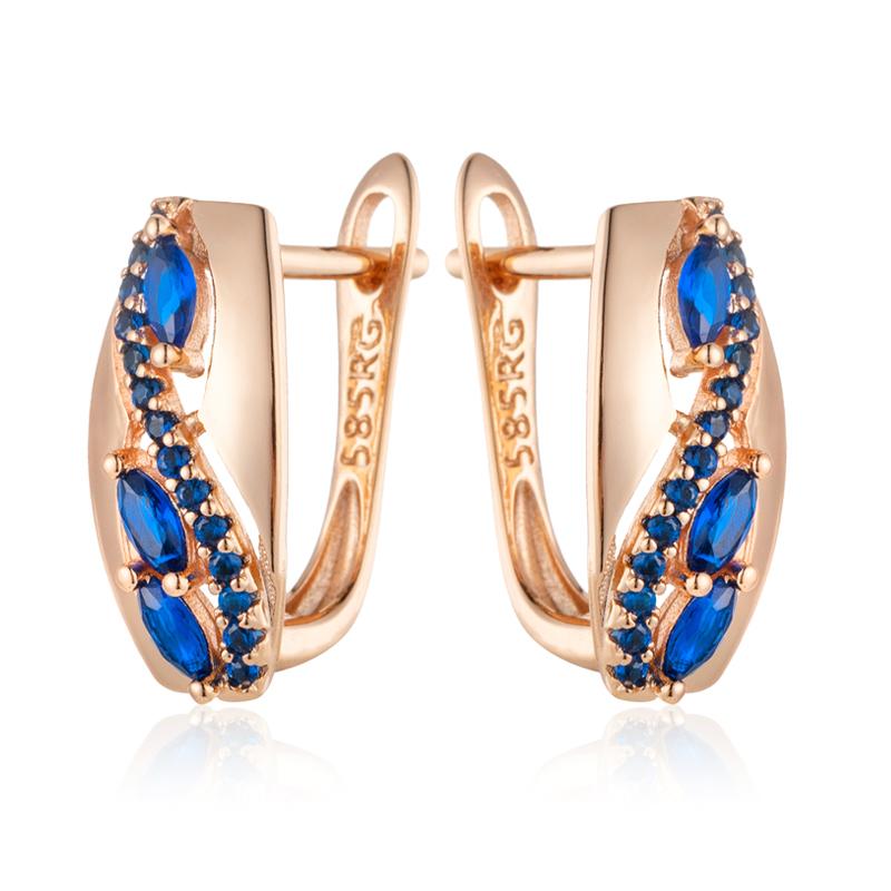 Сверкающие ромбовидные голубые натуральные цирконы английские серьги для женщин модные цвета розового золота свадебные повседневные украшения