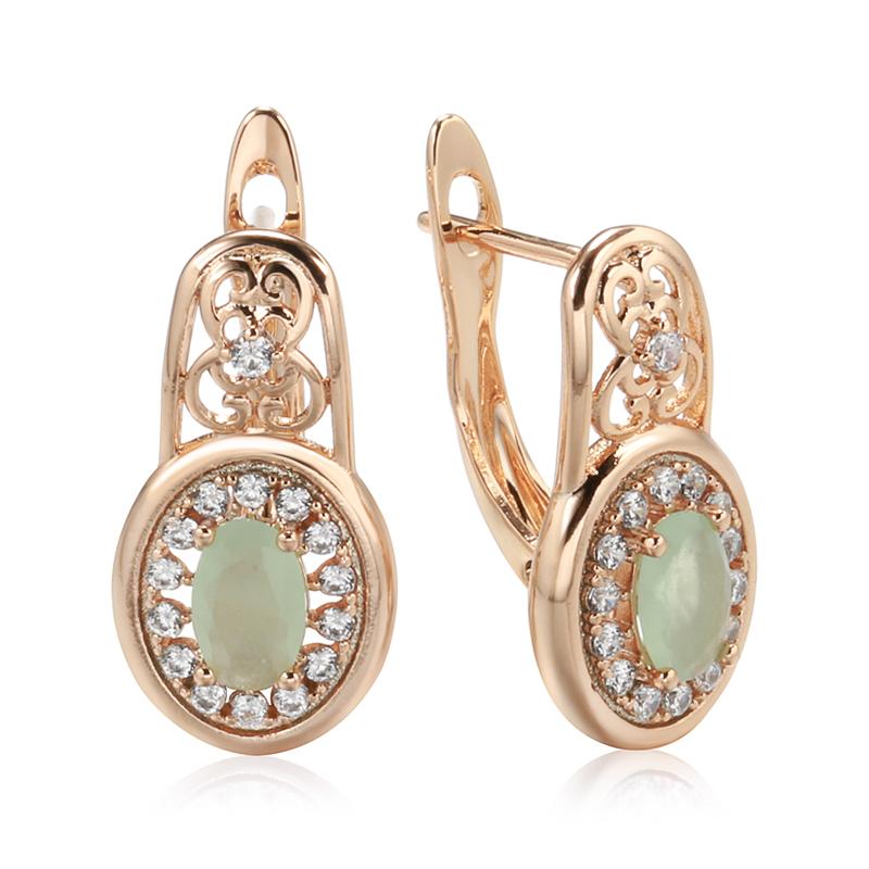 New Emerald Oval Cut Zircon With Rose Gold Drop Earrings Luxury Crystal Flower Women Earrings Wedding Ethnic Jewelry — купить товар онлайн с бесплатной доставкой по всему миру!