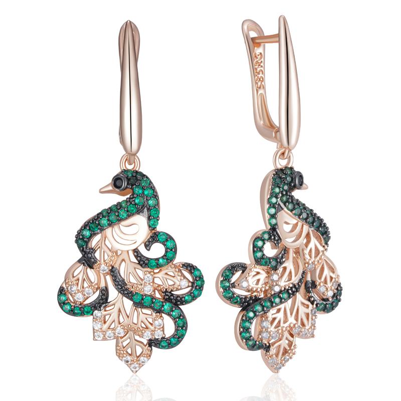 Зеленые Натуральные Цирконы Павлиньи Серьги-Подвески Для Женщин Покрытие Розовым Золотом И Черным Винтажные Животные Повседневные Панк Украшения — купить товар онлайн с бесплатной доставкой по всему миру!
