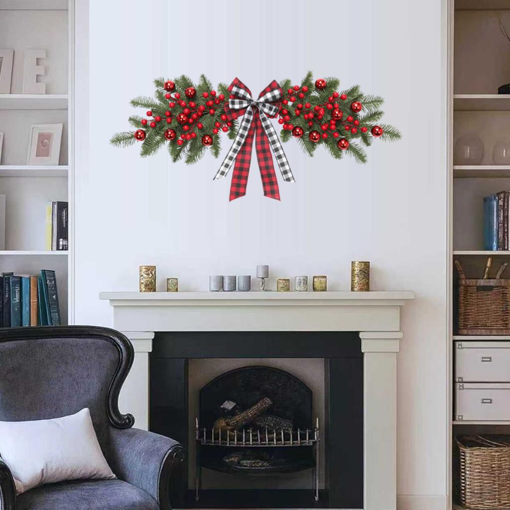 Christmas Door Swag Red Berry Plaid Bow PE Design Festive Holiday LED Light Optional Christmas Door Wall Hanging Decoration