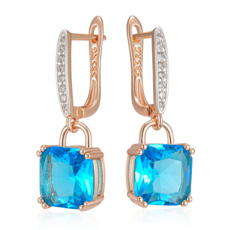 Square Blue Natural Zircon Dangle Earrings For Women Rose Gold Color Mix High Quality Daily Fine Jewelry — купить товар онлайн с бесплатной доставкой по всему миру!