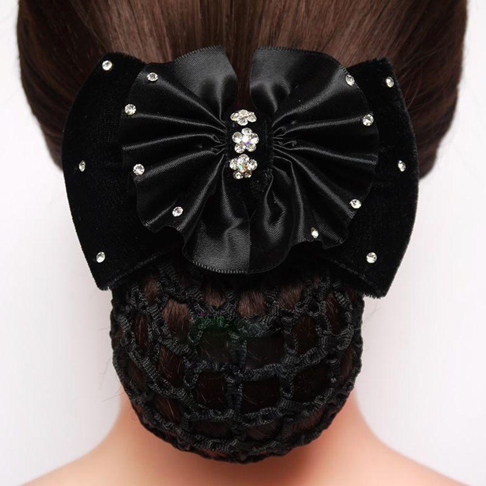 Шарм Сатин Стразы Заколка Дамские Аксессуары для Волос Зажим для Волос Чехол Сетка Пучок Снуд Бант