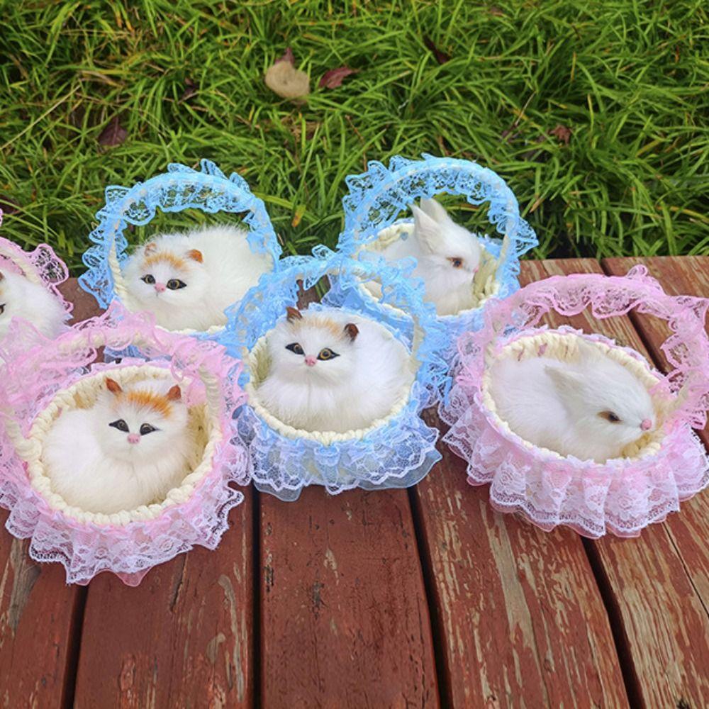 Figurines Plush Bunny Toy With Hanging Basket Simulation Cat Doll Car Ornaments