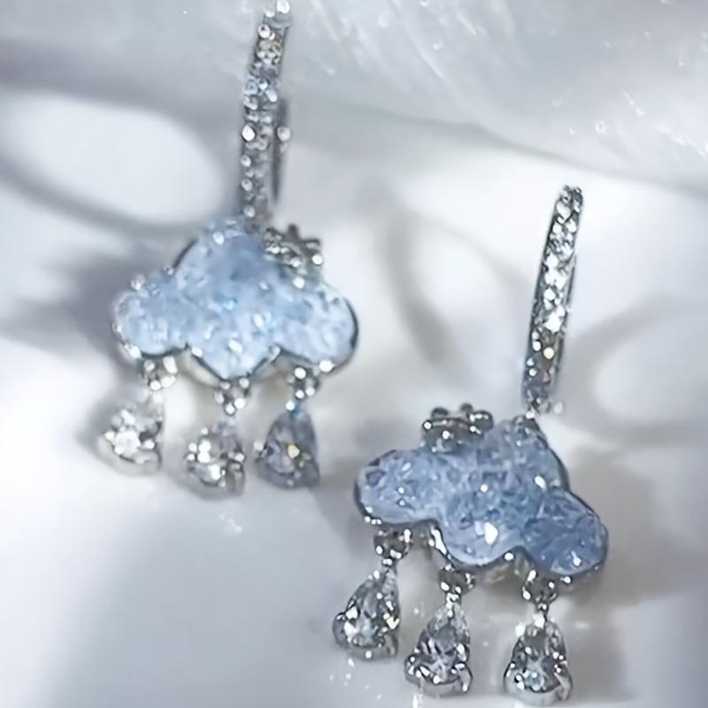 Cute Cloud Hanging Earrings Blue Crystal Rain Cloud Drop Earring Aesthetic Kawaii Zirconia Hoop Dangle Earrings Jewelry