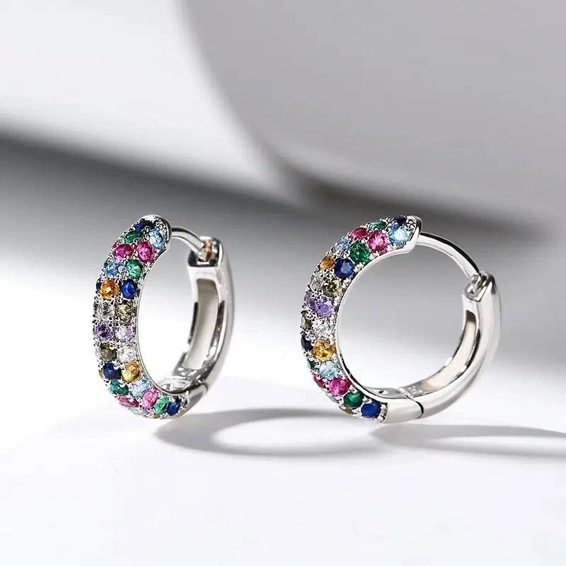 Mini Delicate Circle Earrings With Colored Gemstones For Women Are Perfect For All Seasons, Banquets, Everyday Wear Or Delicate