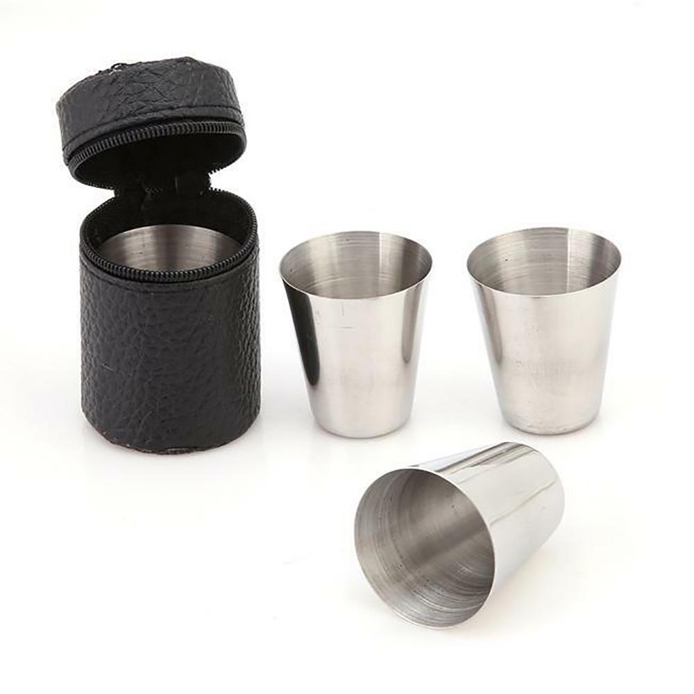 4 шт./набор Мини-рюмки для вина из нержавеющей стали Серебряные Барная посуда Чашка с кожаным чехлом-сумкой для дома, кухни, бара