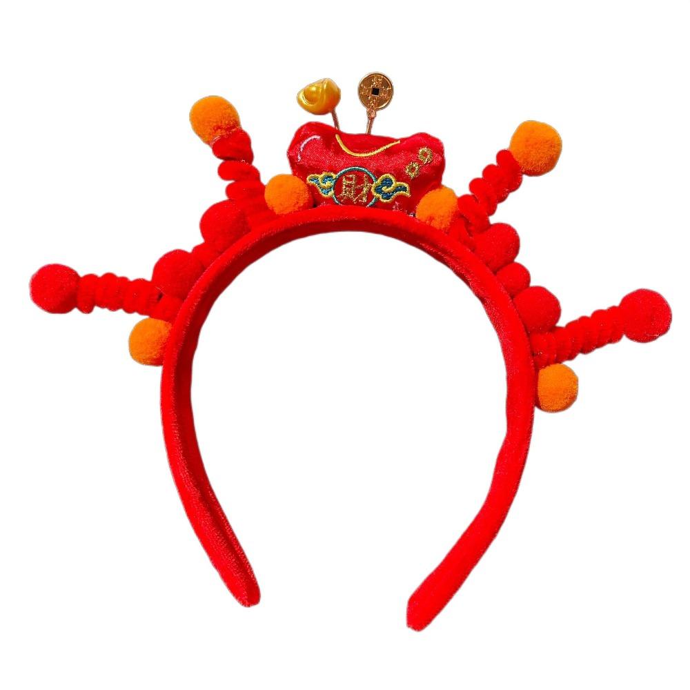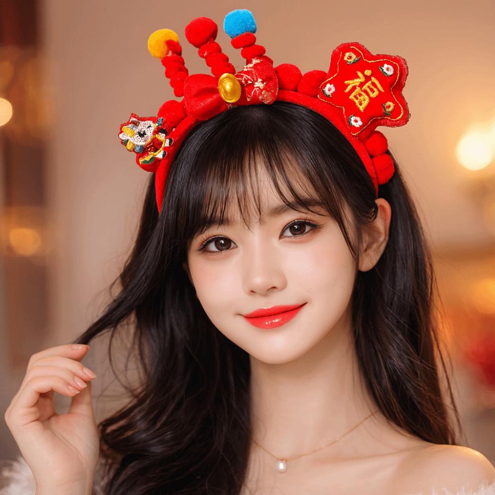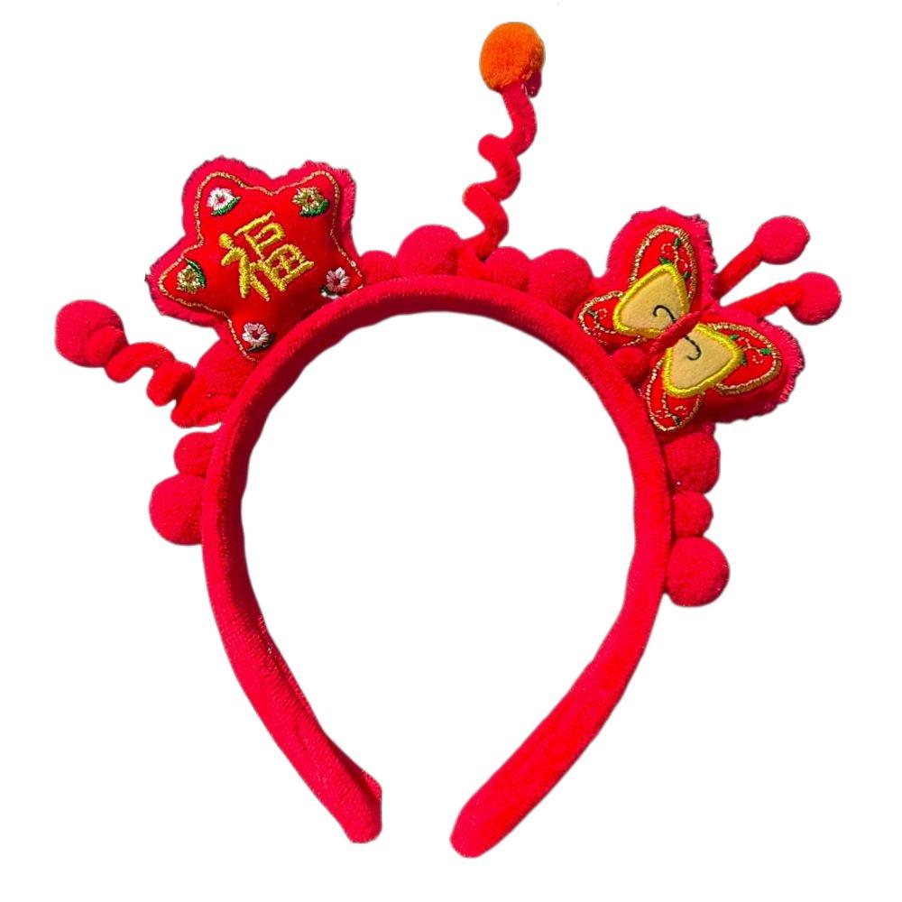Головной убор Новогодний обруч для волос Вышитый бант Древний стиль Повязка на голову Красная плюшевая повязка Фестиваль