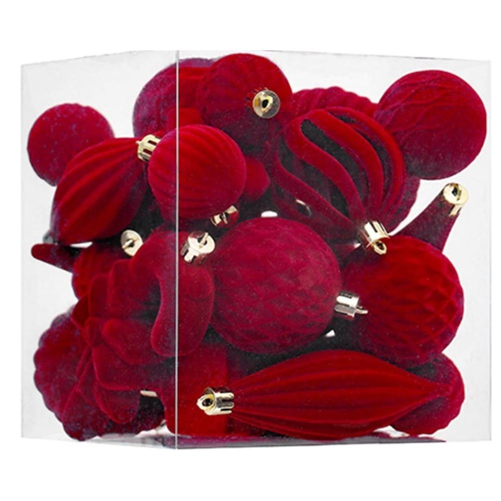 Velvet Christmas Ornaments Set 28 Pcs - Festive Holiday Decor With Assorted Styles For Tree, Table Centerpiece And Home Display — купить товар онлайн с бесплатной доставкой по всему миру!