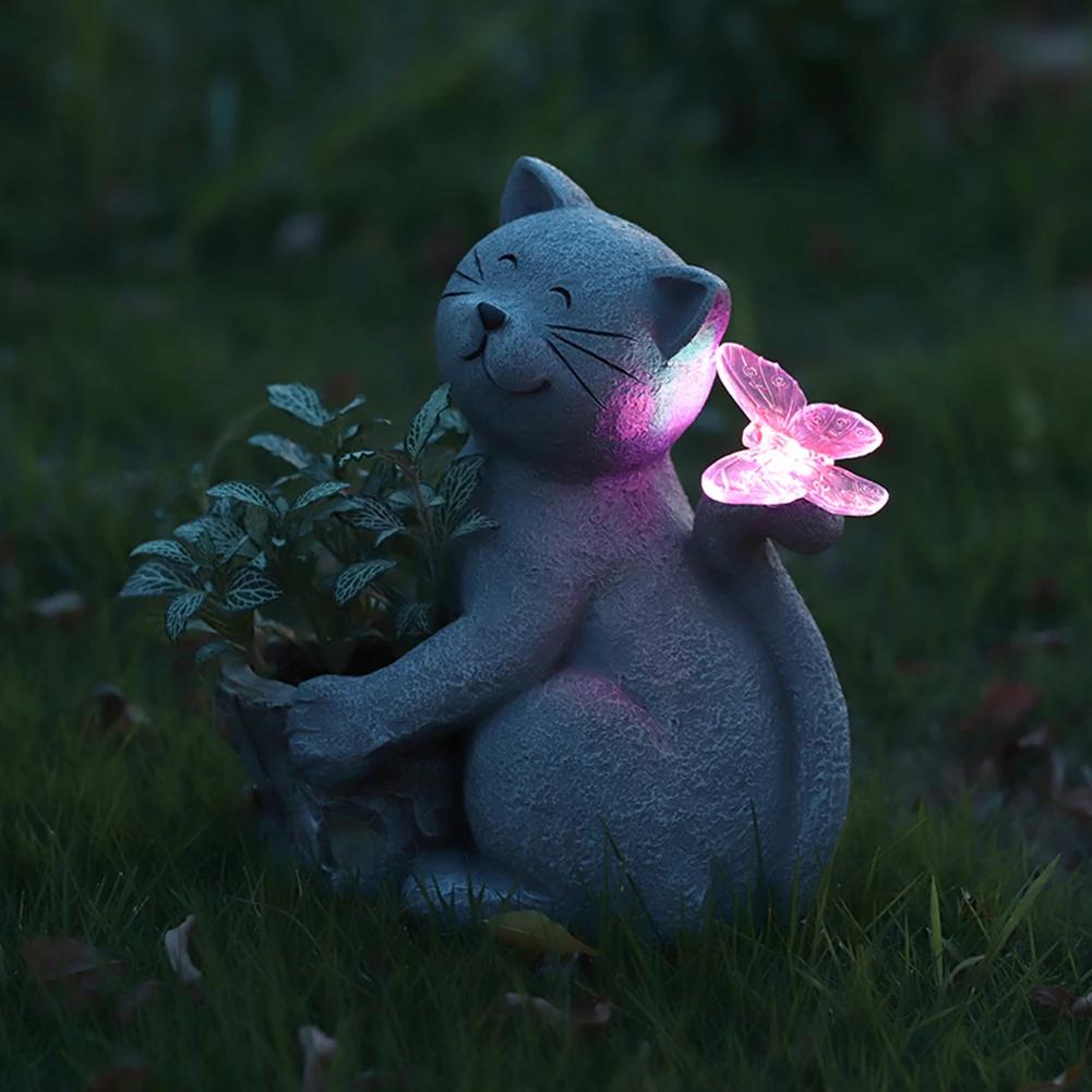 Солнечный кот, цветочный горшок, креативный котенок, суккулентный горшок с подсветкой, статуэтка в виде кошки-бабочки, украшение для двора