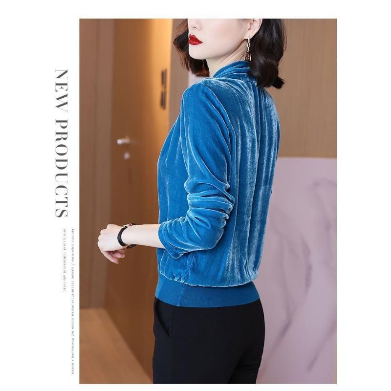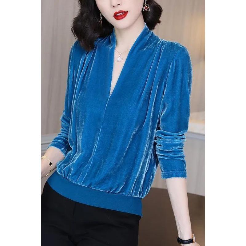 Большой размер Толстый золотой бархат Модная базовая рубашка Осень и зима Новая рубашка с длинным рукавом Приталенный V-образный вырез Повседневный Универсальный топ