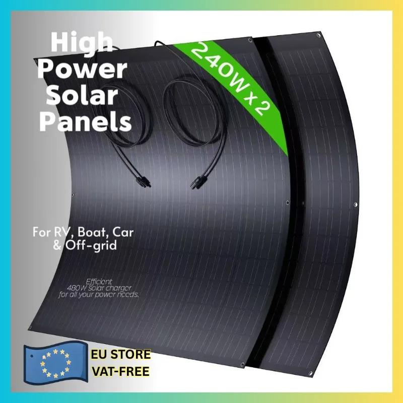 480W Flexible Solar Panel (2×240W) Monocrystalline Solar Module, ETFE Coating, for RV, Caravan, Boat, Roof,