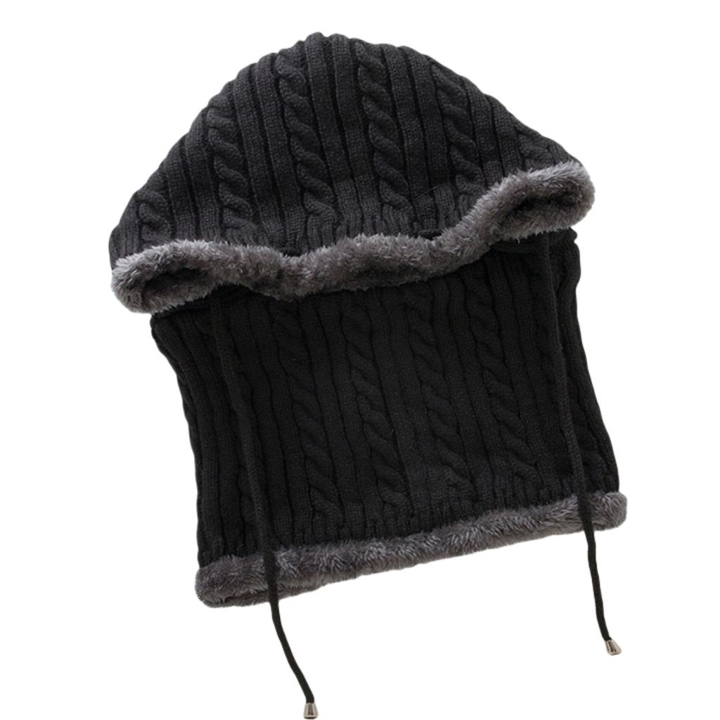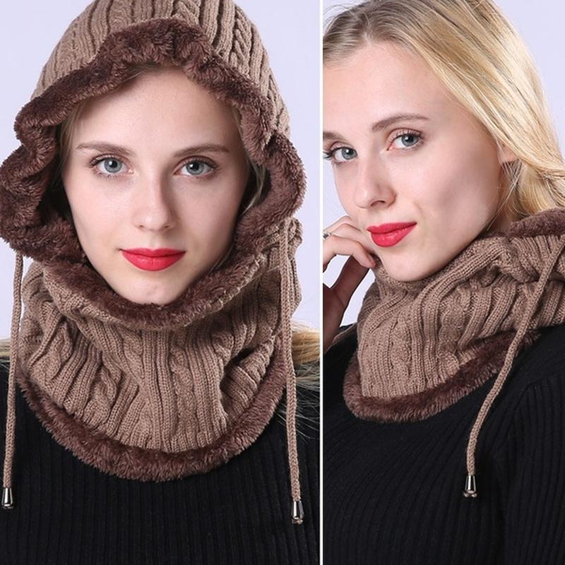 Winter Fashion Men Women Warm Thicken Woolen Knitted Hood Hat Velet Scarf Cap KTB