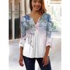 Весенне-летняя мода Новая женская футболка с цветочным принтом, V-образным вырезом, коротким рукавом, плиссировкой и пуговицами, базовая