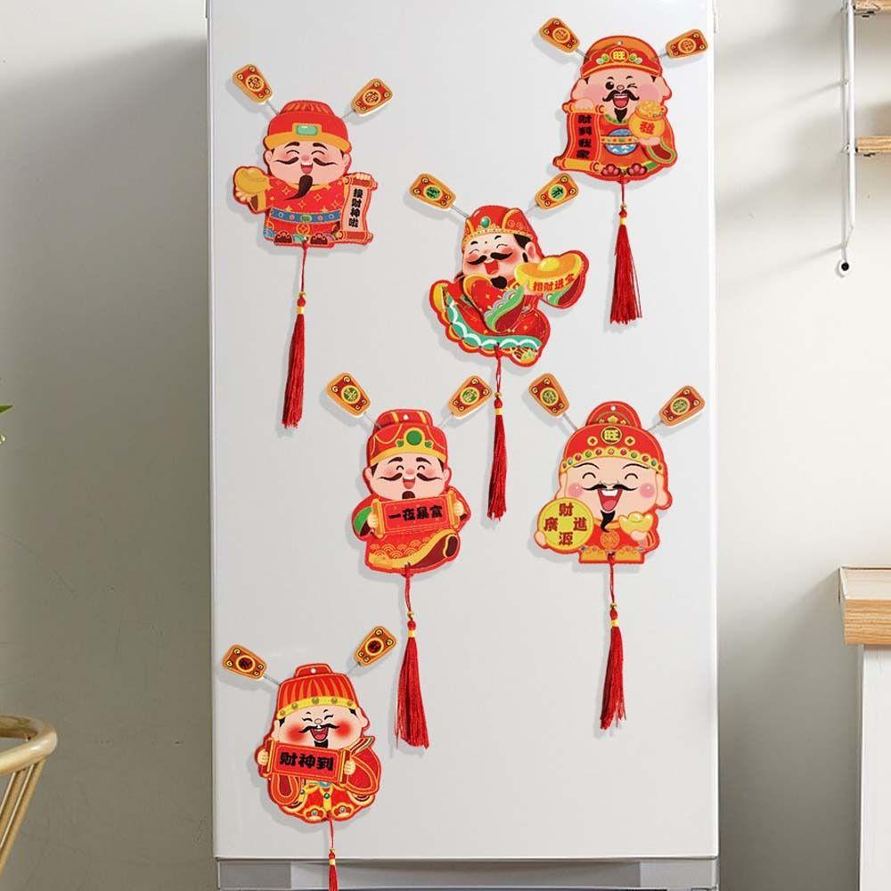 Festive Chinese God of Wealth Fridge Magnets Traditional New Year Fridge Stickers Spring Festival