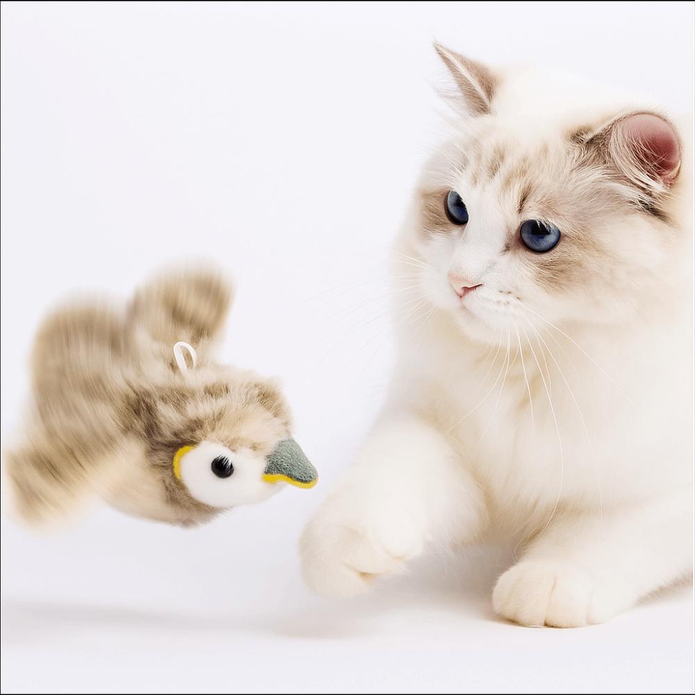Electronic Flapping Bird Cat Toy USB Vivid Chirping Interactive Cat Touch-Activated Hangable Pet Simulation Sparrow Toy