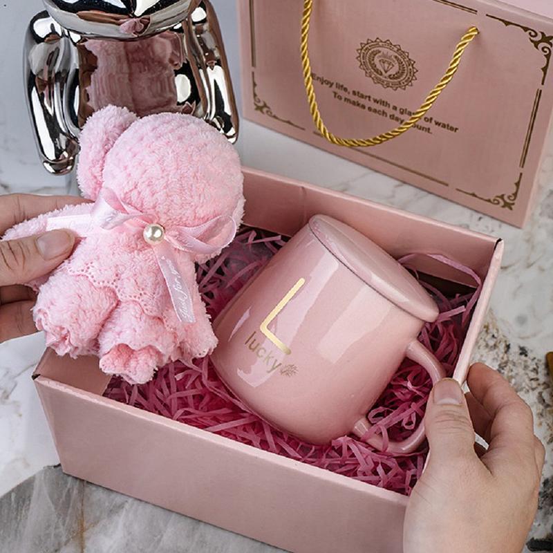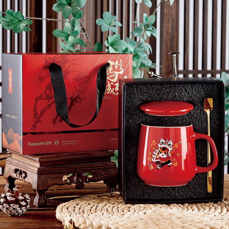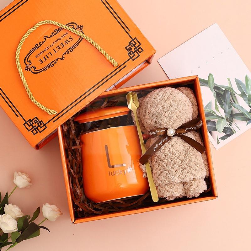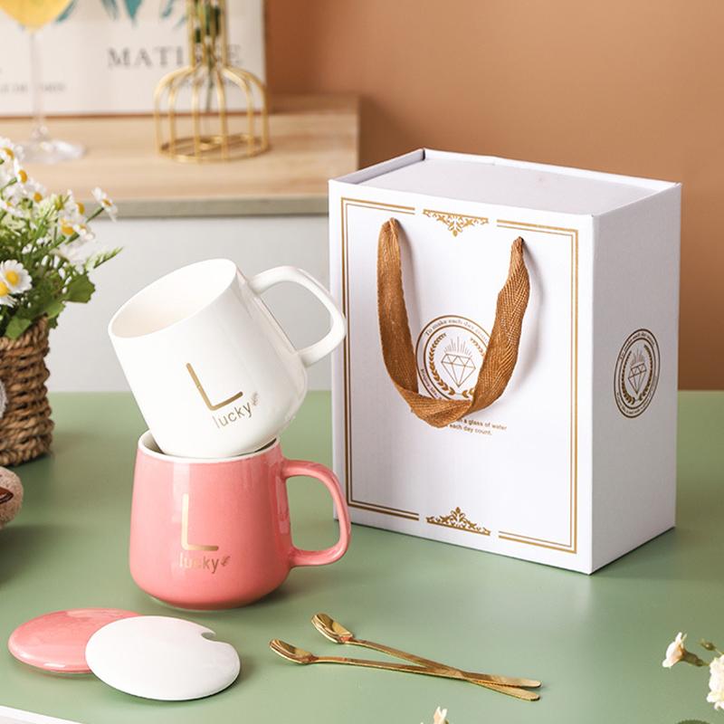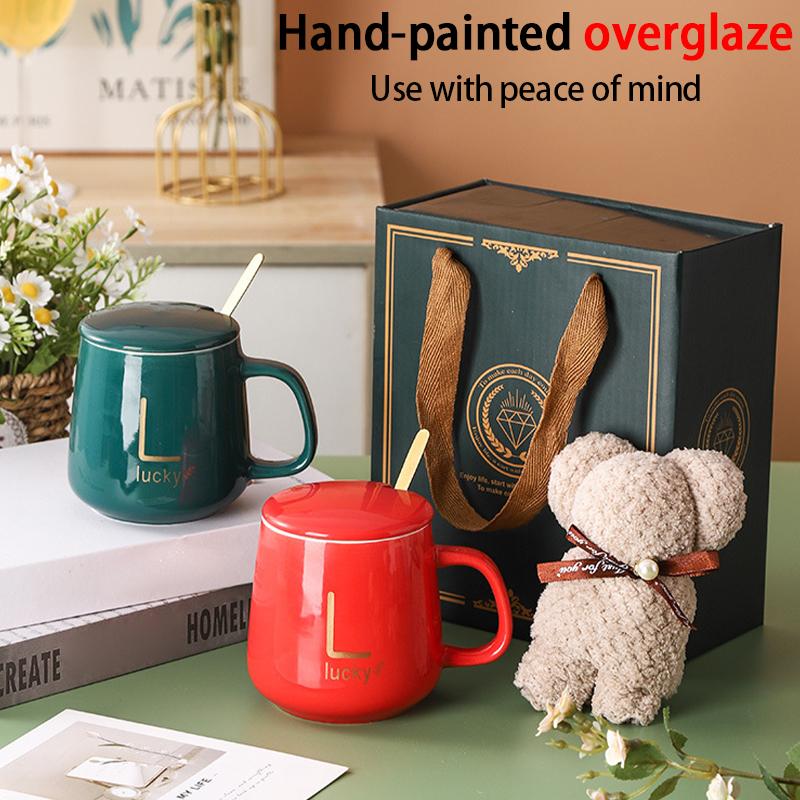 Подарочный набор керамической кружки 400 мл – Ручная кофейная/чайная чашка с ручкой и ложкой в подарочной коробке