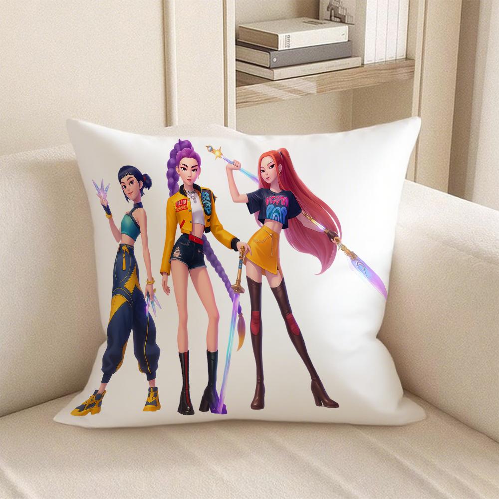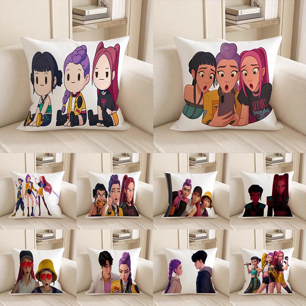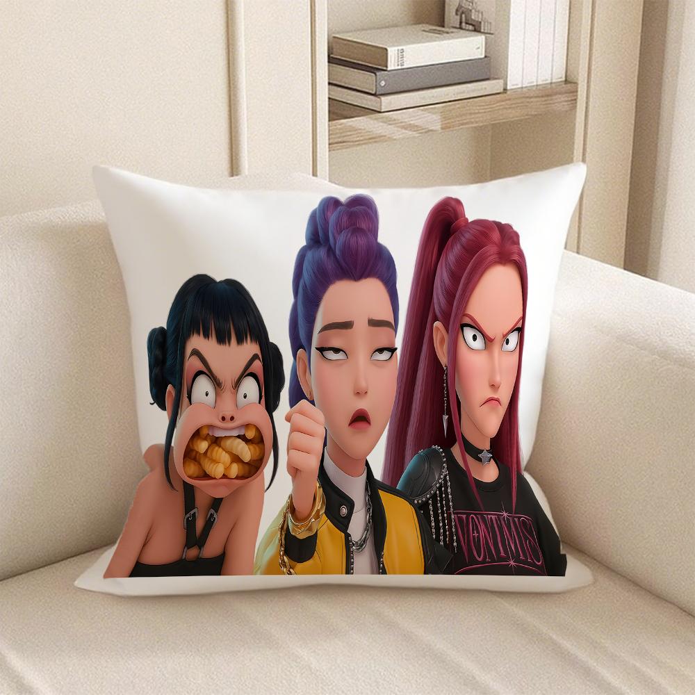 KPop Demon Hunters Super cute cartoon girl on pillowcase: diverse expressions and shapes, fashionable home decoration