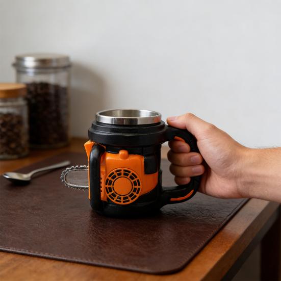 Уникальный дизайн демонстрирует реалистичные вентиляционные отверстия двигателя и элементы бензопилы, что делает его выдающимся предметом для повседневного употребления кофе, чая или холодных напитков.. Идеальная для тематических вечеринок или в качестве темы для разговора, эта кружка также станет идеальным подарком для любителей активного отдыха, энтузиастов DIY и всех, кто ценит инновационную посуду для напитков.
