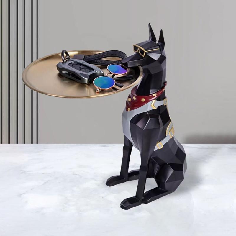 29см Полимерная статуэтка поднос Доберман Декор Органайзер для хранения для гостиной Уникальный подарок для любителей собак Мемориал питомца Домашний декор для стола