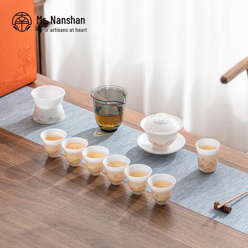 Nanshan Collection 10-Piece Ice Jade Ceramic Kung Fu Tea Set Gift Box