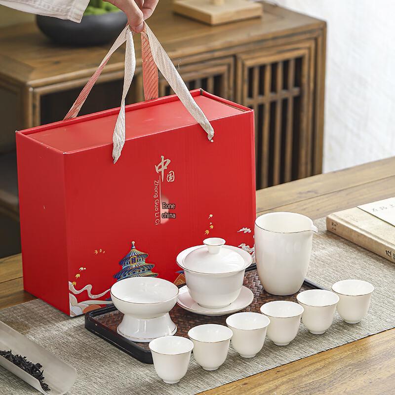 Jun XVII SW Gold-Rimmed White Porcelain Gongfu Tea Gift Set — купить товар онлайн с бесплатной доставкой по всему миру!