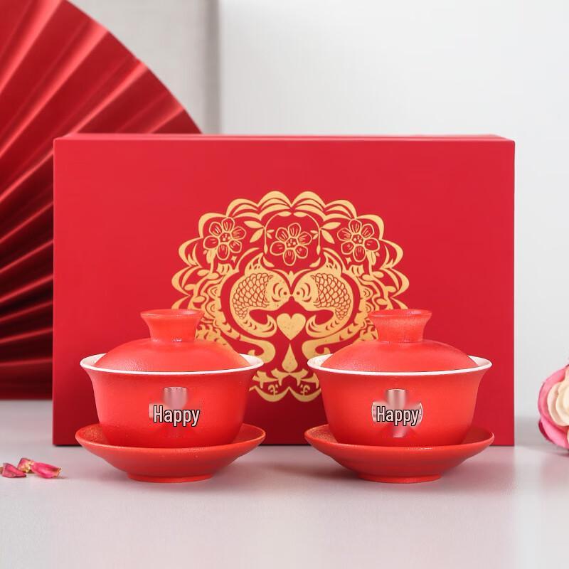 Yuzhuxun Frosted Wedding Ceramic Gaiwan Tea Set
