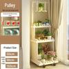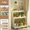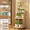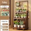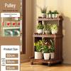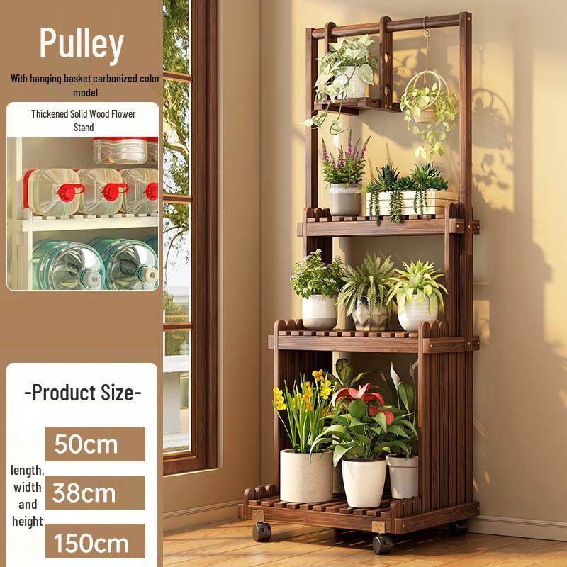 Solid Wood Multi-Tier Rolling Flower Stand with Hanging Basket