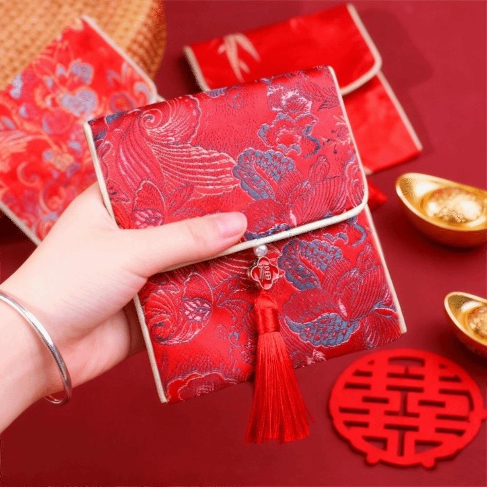 Карман для денег на Праздник Весны, Кисточка, Новогодний денежный мешок, Парчовый красный конверт, Дама, Девушки, Женщины
